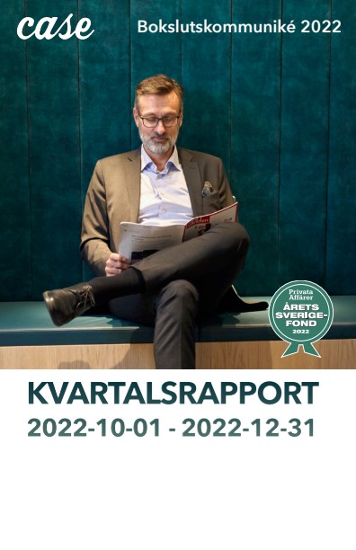 Kvartalet: Case förvaltade volymer ökade med 77% jämfört med utgången av det fjärde kvartalet 2021. Provisionsintäkterna uppgick till 17,5 (17,3) MSEK. Provisionsnettot uppgick till 9,3 (11,0) MSEK. Rörelseresultatet uppgick till -0,8 (0,5) MSEK. Fondvolymerna uppgick till 13 062 (7 370) MSEK. Resultat per aktie var -0,03 (0,02) SEK. Helåret: Case förvaltade volymer ökade med 77% under året. Provisionsintäkterna uppgick till 53,5 (113,9) MSEK. Provisionsnettot uppgick till 30,0 (69,2) MSEK. Rörelseresultatet uppgick till 0,6 (40,9) MSEK. Fondvolymerna uppgick till 13 062 (7 370) MSEK vid periodens utgång. Resultat per aktie var -0,15 (1,69) SEK.
