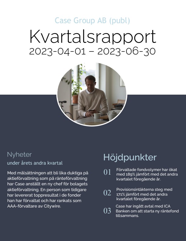 Denna information är sådan information som Case Group är skyldigt att offentliggöra enligt EU:s marknadsmissbruksförordning. Informationen lämnades, genom ovanstående kontaktpersons försorg, för offentliggörande den 2023-08-24 08:00 CEST.